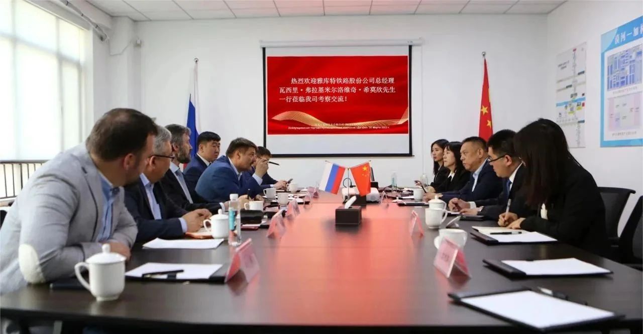 今年2 月雅庫特鐵路代表團曾到訪公司,雙方已就漠河—加林達口岸項目建設(shè)及發(fā)展規(guī)劃方面的合作達成初步共識。本次瓦西里·希莫欣總經(jīng)理一行再度到訪,雙方就深化合作與推動項目落地進行了深入交流,并商定了合作模式、實施路線圖等細節(jié)問題。