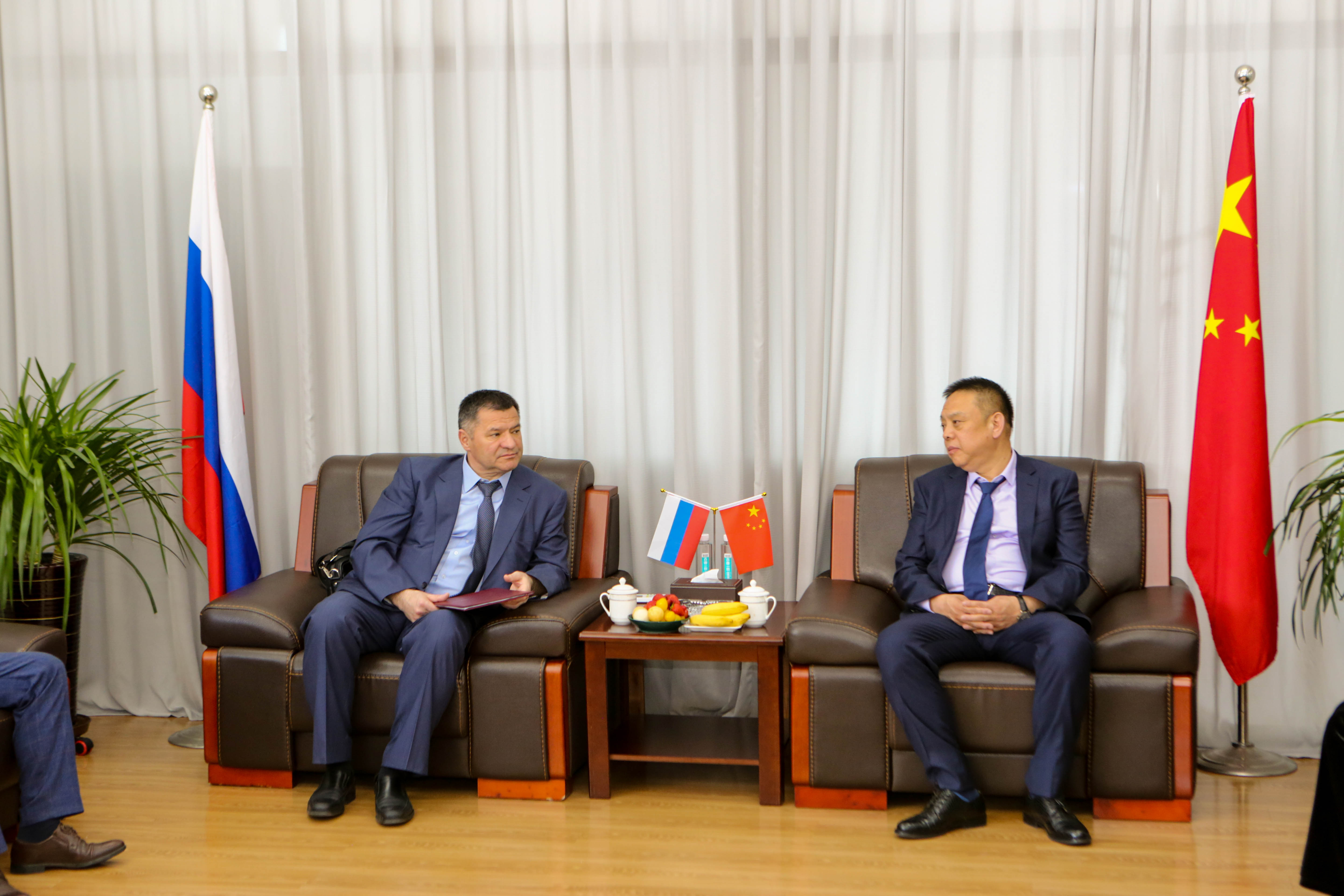 薩哈(雅庫特)共和國政府主席塔拉先科與黑龍江德碩實(shí)業(yè)有限公司董事長董永兵會談